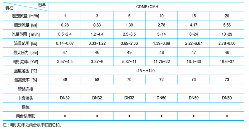 CDMF+CMH系列為參照歐洲標準*新自主研發(fā) 的新一代、*效率非自吸高壓泵。產(chǎn)品采用全新的工 業(yè)設(shè)計,能效指標達到MEI≥0.7 ,具有節(jié)能、低噪、 環(huán)保及結(jié)構(gòu)緊湊、外形美觀、重置輕、使用維護方便、 可靠性高等特點。