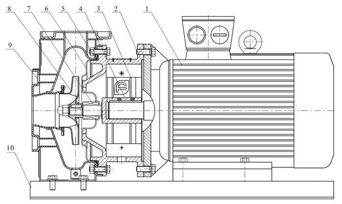 ZS型不銹鋼臥式單級(jí)離心泵為泵軸直聯(lián)型聯(lián)結(jié),由泵、泵軸和標(biāo)準(zhǔn)電機(jī)組成:
