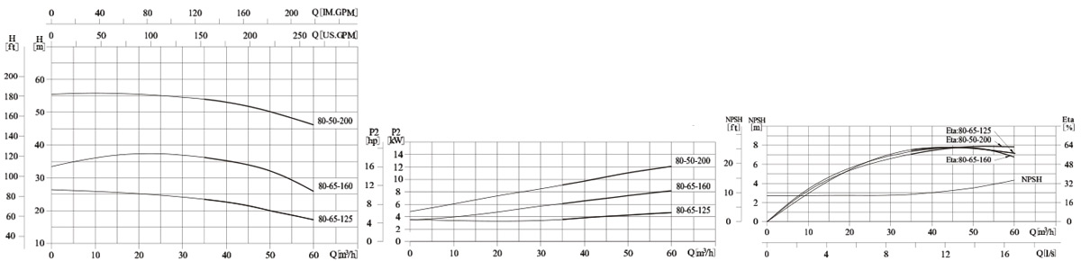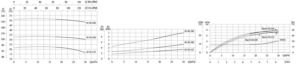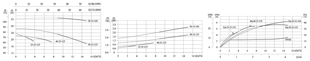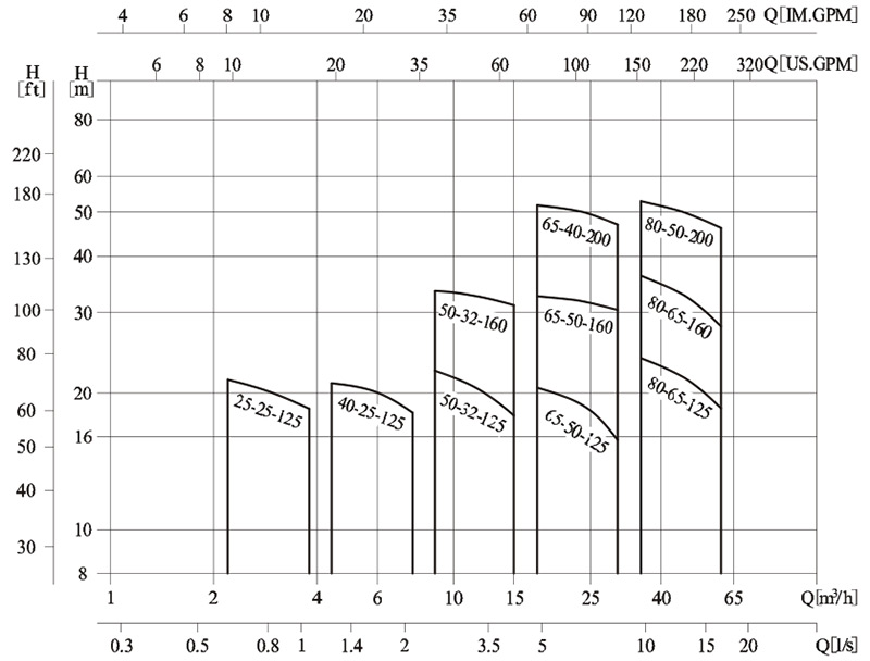 泵的使用參照加粗曲線的性能范圍,以防流量過大使電機(jī)過載。